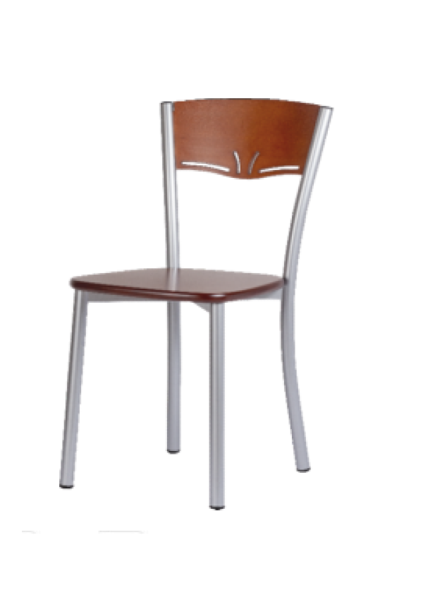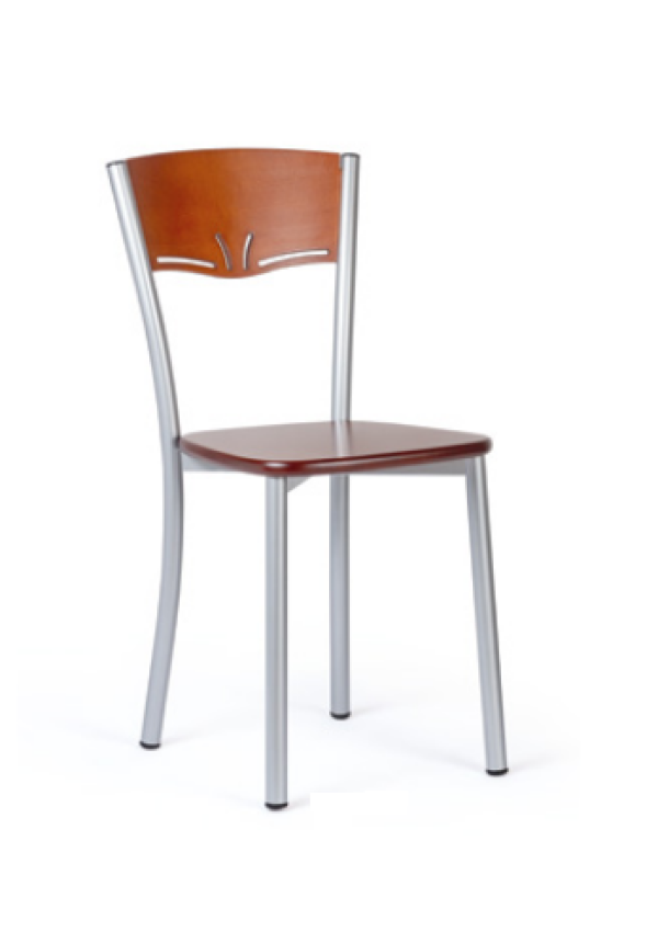 Cadeira com estrutura de apoio em tubo aço de 28mm pintado, assento MDF Folheado